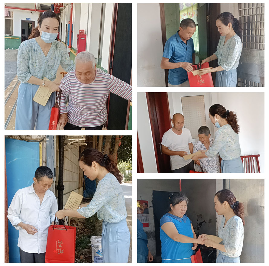 金秋送爽,丹桂飘香。9月7日,在中秋传统佳节来临之际,岳阳新宏组织开展中秋慰问送温暖活动,一户一户上门走访,给结对的岳阳楼区梅溪乡胥家桥村贫困户、五保户送去月饼和慰问金,送上来自新宏人的中秋佳节美好祝福。每到一处,工作人员仔细询问他们的身体情况和生活状况,叮嘱他们保重身体,让他们感受到社会大家庭的温暖,度过一个祥和温馨的中秋佳节。